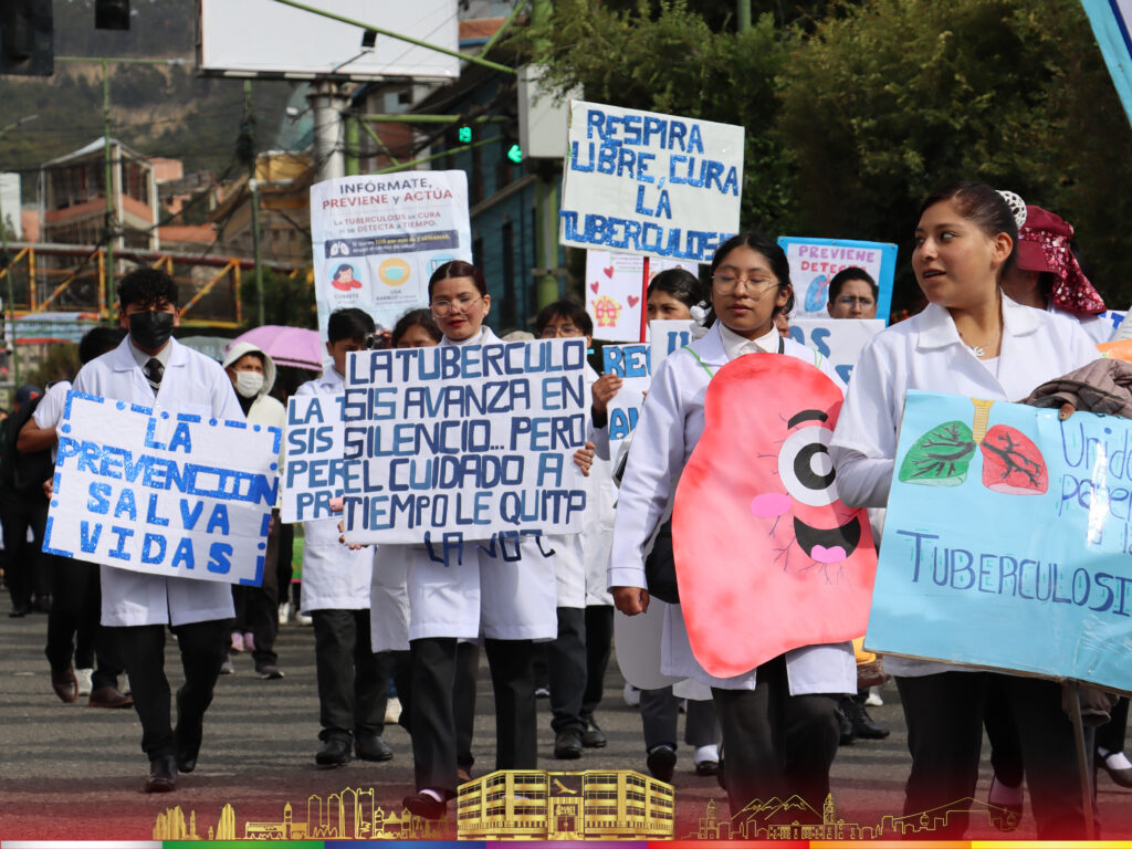 La Paz, 27 de marzo 2026.- En conmemoración al Día Mundial de la Tuberculosis, el Servicio Departamental de Salud (SEDES) La Paz, llevó a cabo una caminata de concientización bajo el lema “Con Esfuerzo y Compromiso, Avancemos Juntos Contra la Tuberculosis”. La actividad contó con la participación de más de 400 personas de diferentes instituciones, con el objetivo de promover la prevención y el diagnóstico oportuno de esta enfermedad.