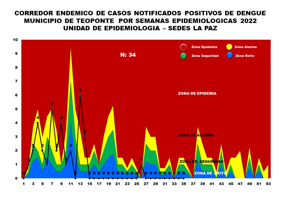 Corredor endémico de EDAS de neumonías en menores de 5 años total Departamento por semanas Epidemiológicas 2022 Unidad de Epidemiologia – SEDES La Paz